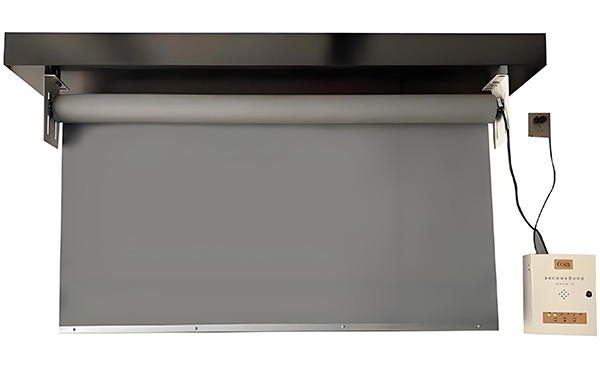 连接电源线和控制线,将达日挡烟垂壁安装在支架上,并用螺丝固定。